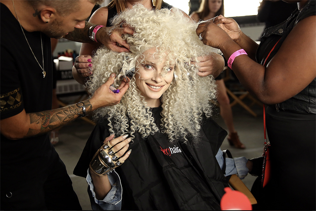 Model shot by Monica Schipper on a TRESemme assignment backstage at the Studio 189 fashion show during NYFW